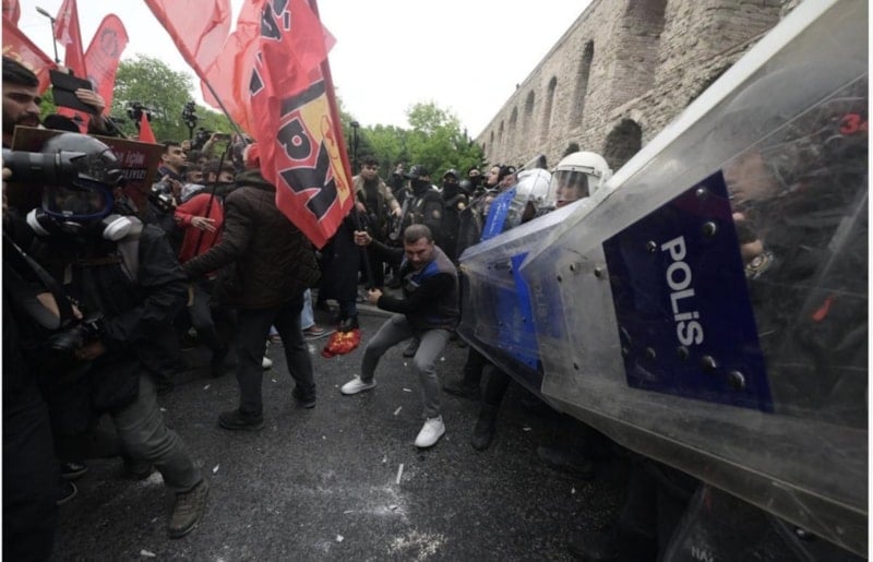 1 Mayıs'ta Taksim Meydanı'na çıkmak isteyen sol örgütler ve polisler arasında arbede yaşanırken bazı şahıslar ise polise tehditler savurdu.