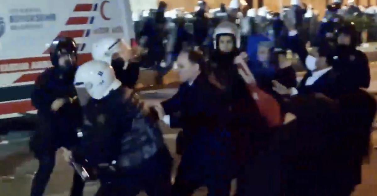 Protestolar sırasında polis ekipleri göstericilere müdahale ederken, CHP Zonguldak Milletvekili Deniz Yavuzyılmaz, polisleri ittirmeye başladı.
