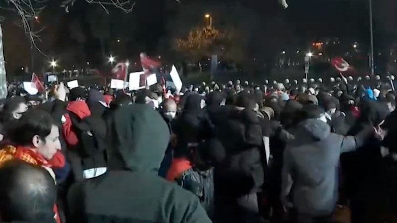 Saraçhane'de toplanan eylemciler, polisi hedef alıyor.
