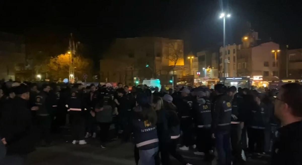Ekipler taşkınlık çıkaran grubun içerisinden bazı kişileri gözaltına aldı.