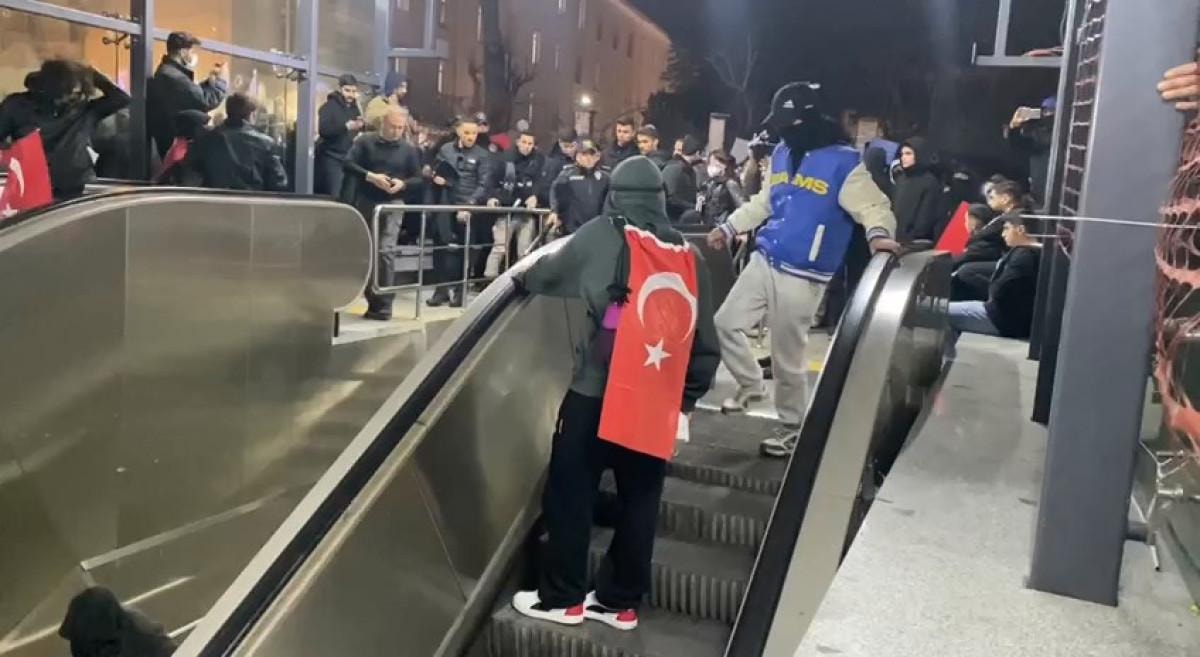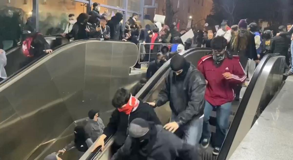 Polis ekipleri grubun buradan da dağılmasını istediği sırada, bazı göstericiler metro istasyonunun yürüyen merdivenlerine vurarak taşkınlık çıkardı.