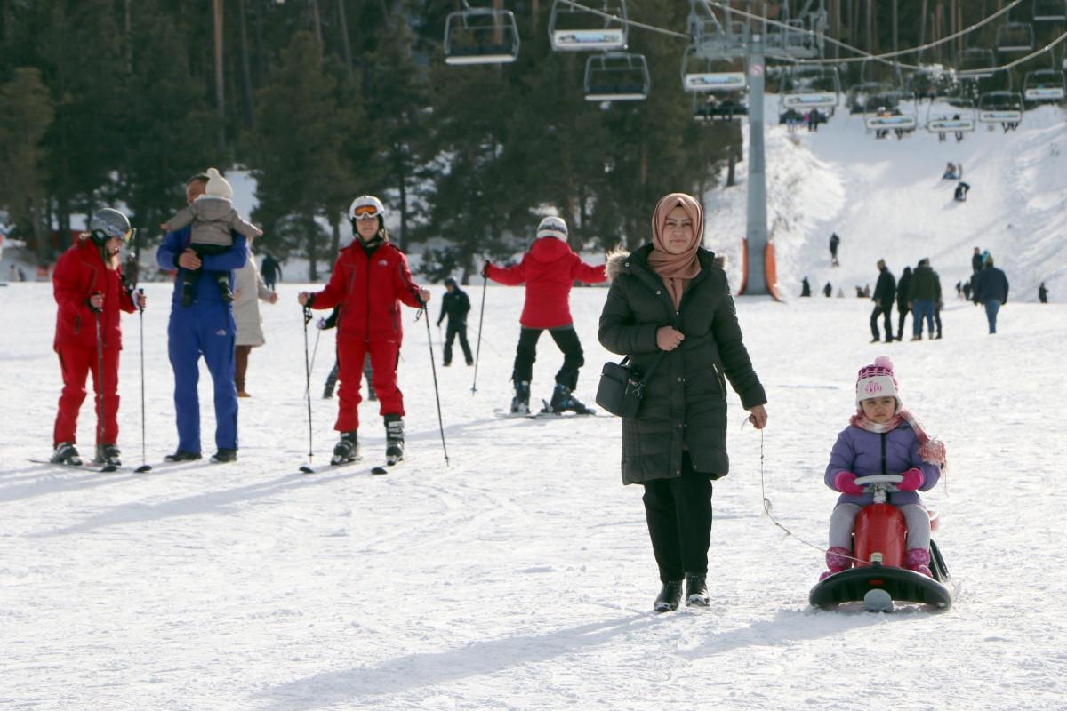 En uzunu 3 bin 500 metre olmak üzere 9 pistten aynı anda binlerce kişinin yararlanabildiği kayak merkezinde, kayak ve snowboard yapmasını bilmeyenler de kızakla kayarak karın keyfini çıkarıyor.