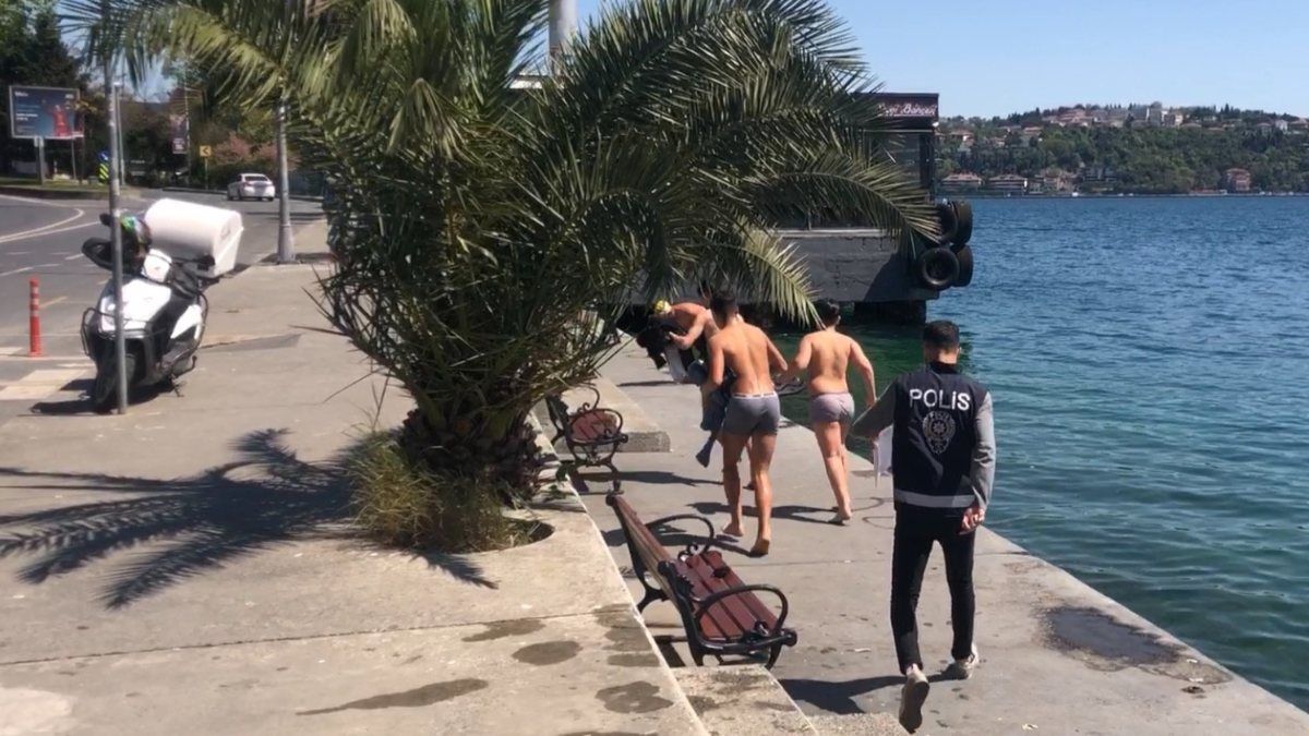 Öte yandan polis ekipleri, bir grup vatandaşın denize girdiğini gördü. Polis ekipleri denize girenlere doğru ilerlerken durumu fark eden vatandaşlar ise kıyafetlerini giyinmeden kaçmaya başladı.