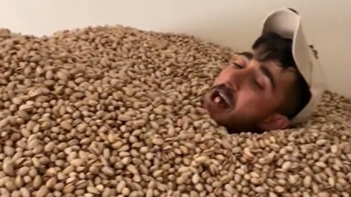 Önce fıstıkları ağzına aldı ardından geri tükürdüğü görüldü.