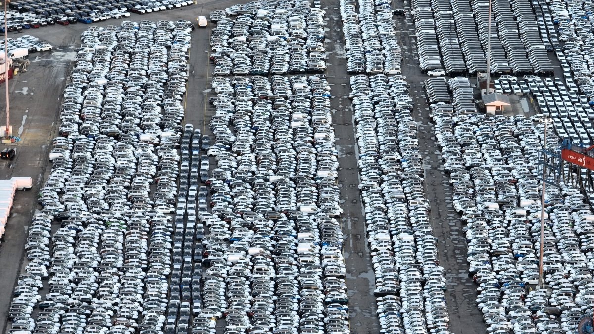 Görüntülerde, araçlardan bazılarının gemilerden indirilerek, park alanlarına dizilmeye devam edildiği görülüyor.