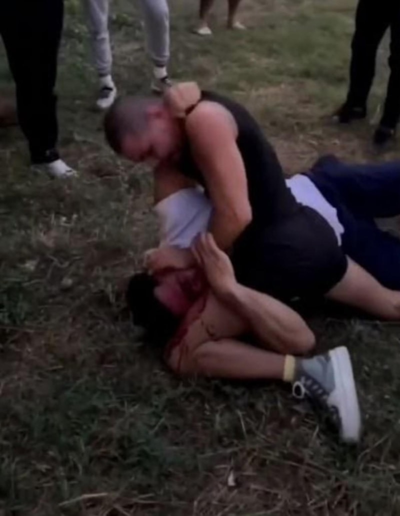 Kavga sırasında Savaş Cebeci, Kaan Kazgan’ın darbeleri sonrasında kanlar içerisinde kaldı.