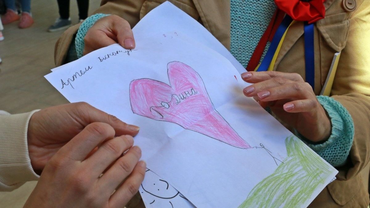 Yine bir çocuğun çizdiği resimde ise savaşın bitip evine dönmek isteyen bir çocuğun kalp resmi çizdiği ve onu eliyle tuttuğu görüldü.