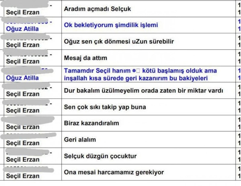 Seçil Erzan: Dur bakalım üzülmeyelim orada zaten bir miktar vardı, Sen çok sıkı takip yap buna, Biraz kazandıralım geri alalım Selçuk düzgün çocuktur. Ona mesai harcamamız gerekiyor. Bir memnuniyet yakalarsak hepsini geri alırız.