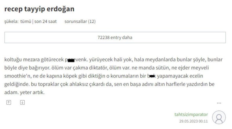 Erişim engelinin kaldırıldığı Ekşi Sözlük'te, Cumhurbaşkanı Recep Tayyip Erdoğan hakkında alçakça yorumlarda bulunuldu.