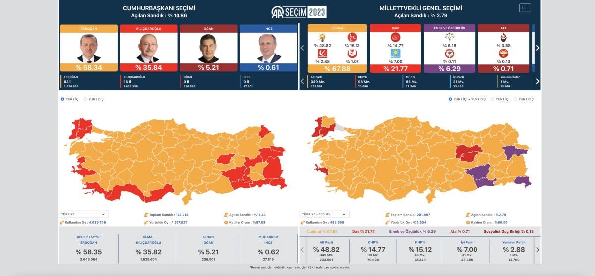 14 Mayıs 2023 Cumhurbaşkanı ve 28. Dönem Milletvekili Genel Seçimleri tamamlandı. Seçim yasaklarının kalkmasıyla veriler tek tek yayınlanmaya başladı.