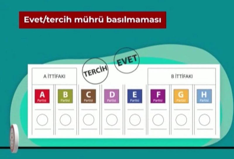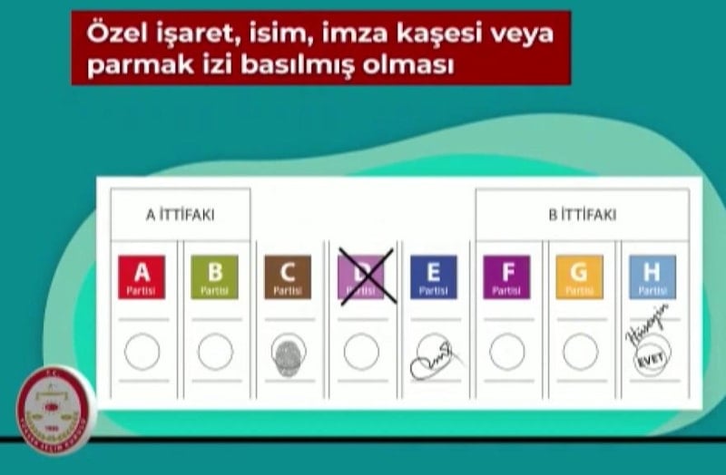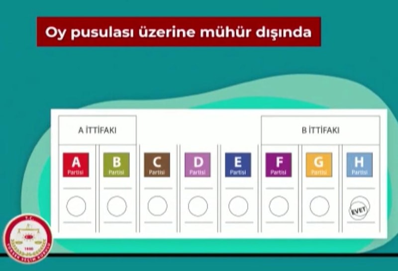 Videoların içeriği doğrultusunda, 'evet', 'tercih' mührünün basılmaması, birden fazla ittifaka, siyasi partiye veya adaya oy basılması, oy pusulasının bütünlüğü bozulacak şekilde yırtılması veya koparılması, oy pusulasının üzerine mühür dışında veya mühür yerine herhangi bir özel işaret, imza kaşesi veya parmak izi basılması, oy pusulasının belirgin bir şekilde özel olarak karalanması, çizilmesi veya işaretlenmesi, zarftan işaret anlamı taşıyan herhangi bir madde çıkması sonucunda oyun geçersiz sayılacağı belirtildi.