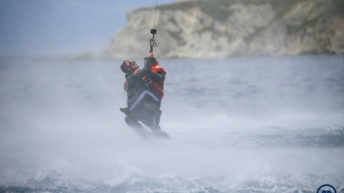 Helikopterden atlama, denizde yardım isteyen sığınmacıları helikopterle kurtarma, dalış, bottan atlama ve toplama gibi gerçeği aratmayan eğitimler adeta nefes kesti.