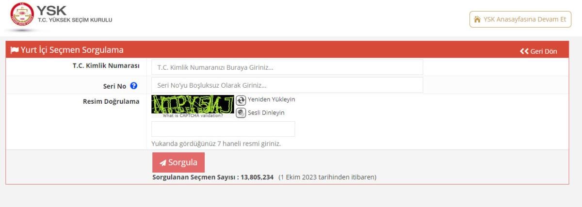 Nerede oy kullanacağınızı öğrenmek için YSK'nin internet sitesi "secmen.ysk.gov.tr" adresinden bilgilerinizi girerek öğrenebilirsiniz.
