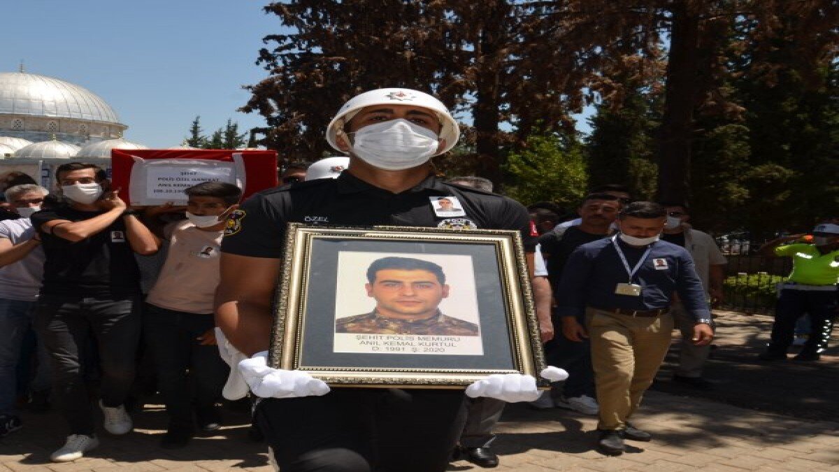 2 yıl önce evlenen 1 çocuk babası şehit polis memuru Anıl Kemal Kurtul'un naaşı cuma namazı sonrası kılınan cenaze namazı sonrası toprağa verildi.