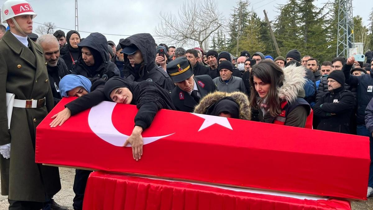 Kız kardeşleri ise tabuta sarılıp gözyaşı döktü. Şehidin ailesini, yakınları teselli etmeye çalıştı.