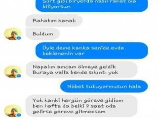 “Nöbet tutuyor musun hala’’ yazan akrabasına şehit er, “Yok kanki, her gün göreve gidiyorum ben, haftada belki 2 saat. O da gelirse göreve gitmezsem” yazıyor.