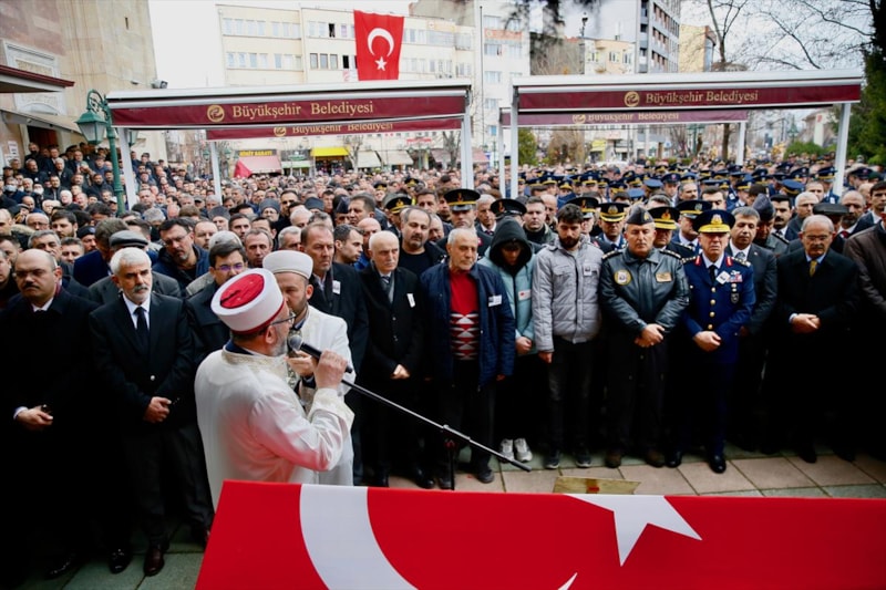 50 yaşındaki şehidin cenazesi, askeri uçakla 1'inci Ana Jet Üs Komutanlığı'na oradan da törenin yapılacağı Reşadiye Camisi'ne götürüldü.
