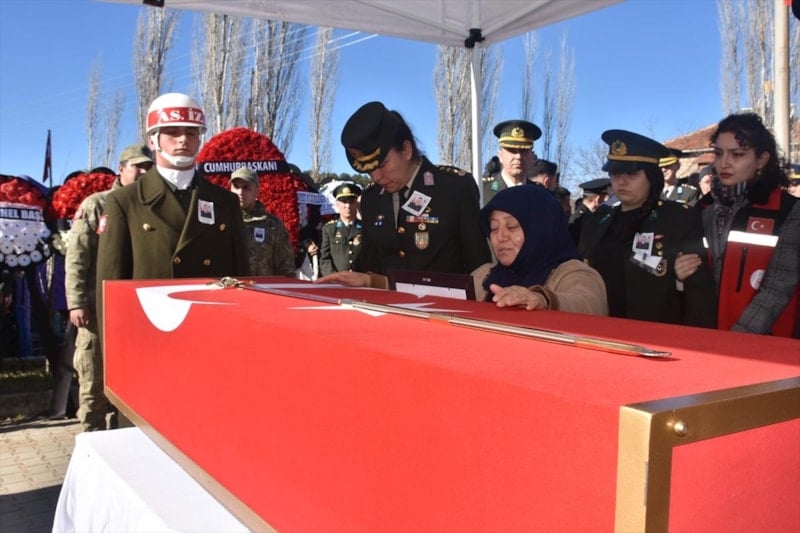 Ağabeyinin asker üniformasını giyen Yasemin Günay, tabutun üstüne subay kılıcı bıraktı.