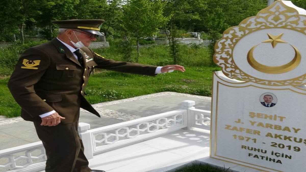 Şehit babası Rüştü Akkuş, sevindirici haberi alır almaz hemen yıllarca Türk Silahlı Kuvvetlerinde hizmet ederken giydiği üniformasını üzerine giyerek şehit oğlunun kabrini ziyaret etti.