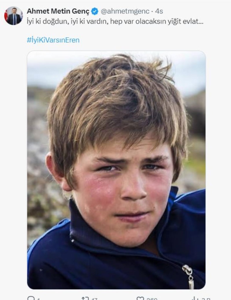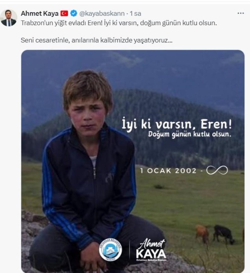'Biri de çıkıp demiyor ki Eren iyi ki varsın' paylaşımıyla Türkiye'yi hüzne boğan şehit Eren Bülbül için binlerce vatandaş doğum günü kapsamında paylaşımlarda bulundu.