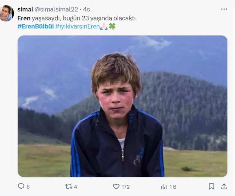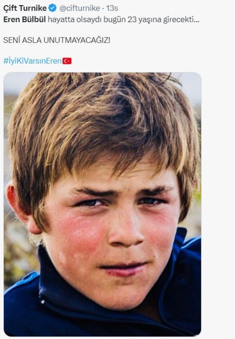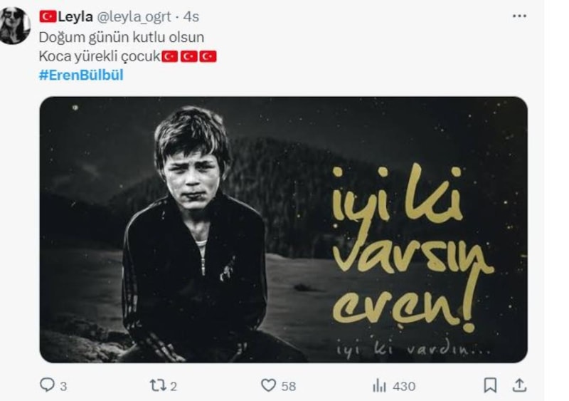 1 Ocak 2002 doğumlu Eren Bülbül için sosyal medyada binlerce kullanıcı, paylaşım ve yorumlarda bulundu.