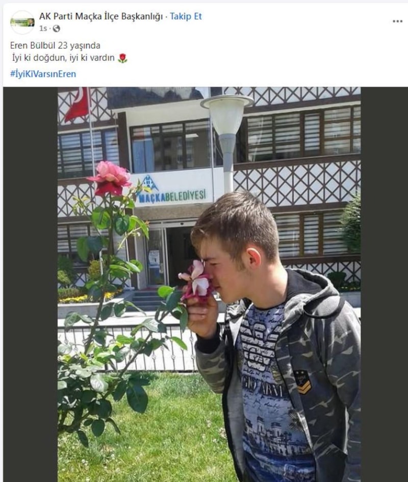11 Ağustos 2017'de Eren Bülbül, Trabzon'un Maçka ilçesinde PKK'lıların erzak çaldığını ihbar ederek güvenlik güçlerine evi göstermişti.
