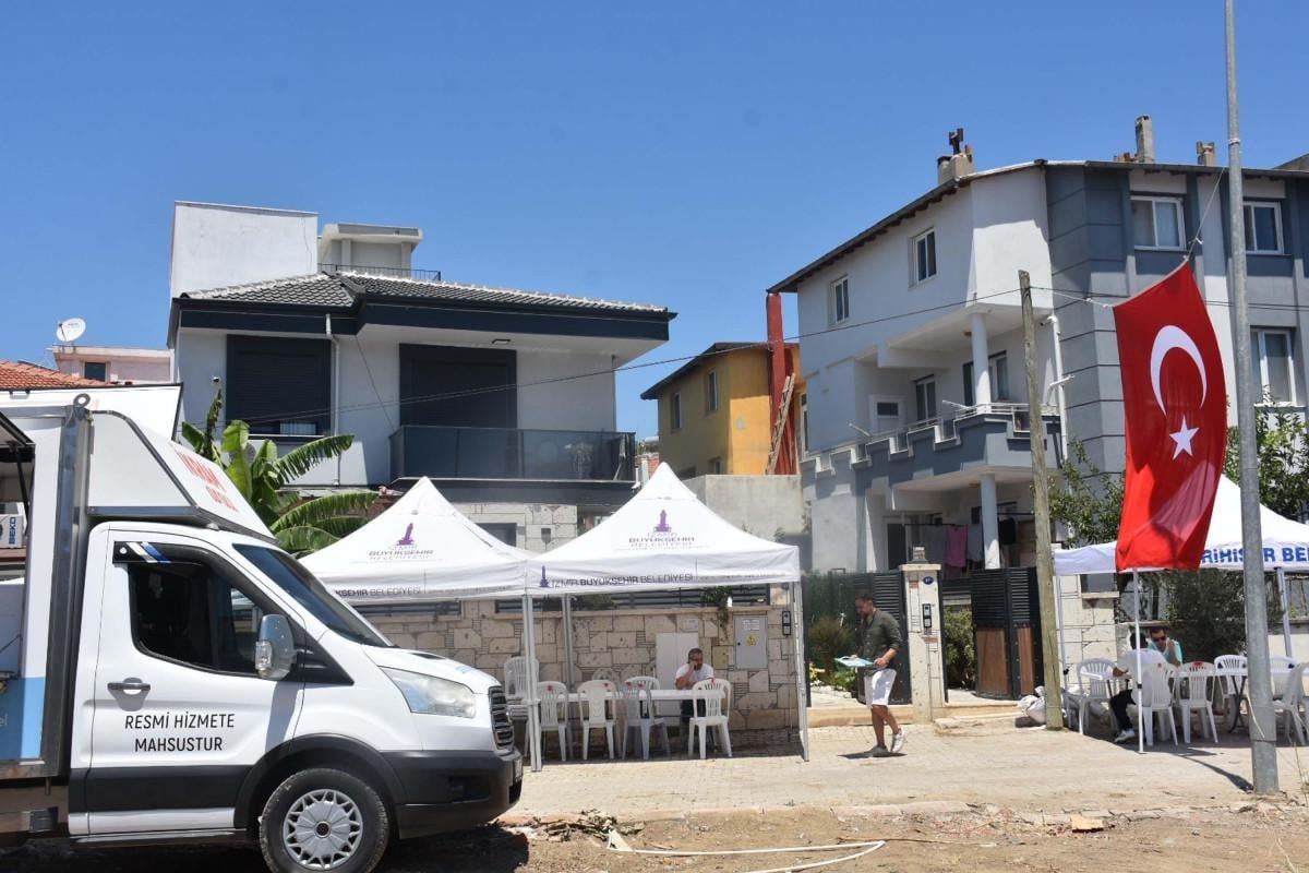 Şehit ailesinin İzmir'deki evinin sokağına ve Manisa'daki annesinin evi ile sokağa Türk bayrakları asıldı. Evlerin önüne taziye çadırı kuruldu.