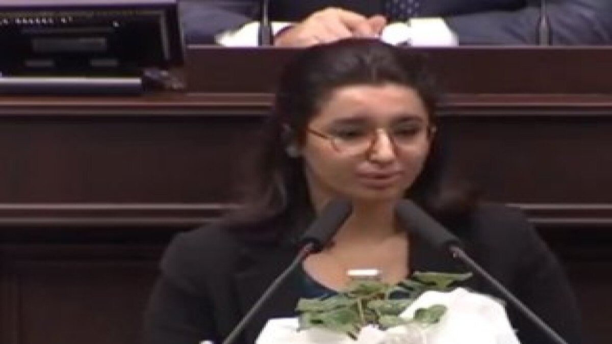 Cumhurbaşkanı ve AK Parti Genel Başkanı Recep Tayyip Erdoğan, AK Parti Grup Toplantısı'nda Mardin Nusaybin'de YPG'nin havanlı saldırısı sonucunda şehit olan Mehmet Şirin Demir'in kızı Gülay Demir'i kürsüde ağırladı.