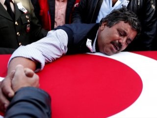Bu sırada şehidin akrabası 4 yaşındaki Şeyma Sakallı'nın babasının kucağında yaklaştığı naaşın üzerindeki Türk bayrağını okşaması dikkat çekti.