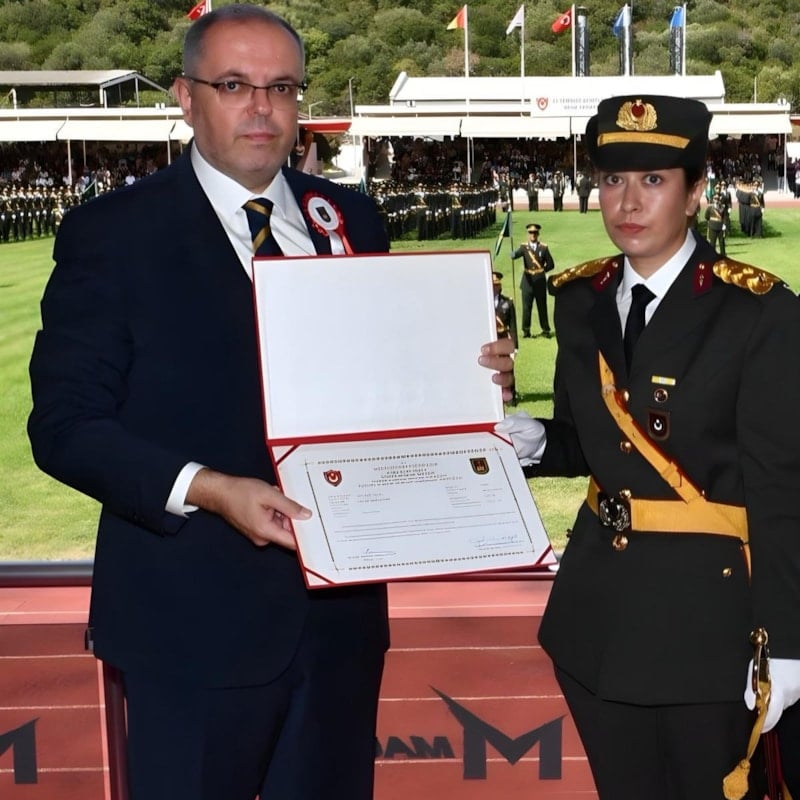 Elif Nur Halisdemir, diplomasını Milli Savunma Üniversitesi rektörü Prof. Dr. Erhan Afyoncu'nun elinden aldı.