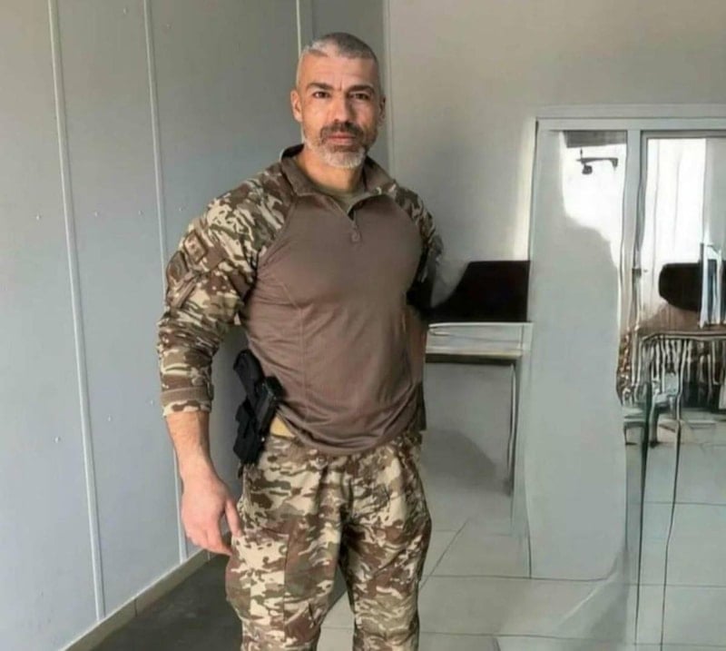 Burada askeri kamuflaj giyen bir yakını, şehidin çerçeveli fotoğrafını taşıdı.
