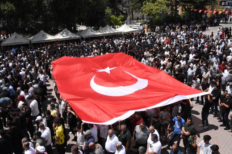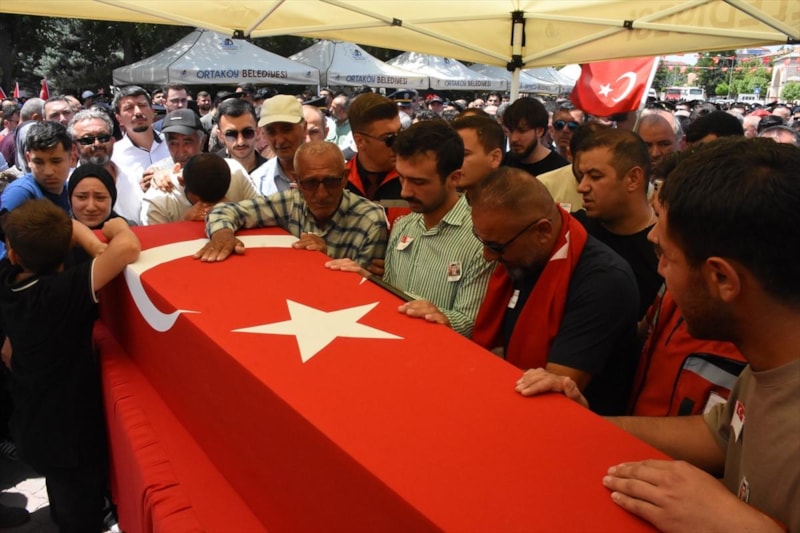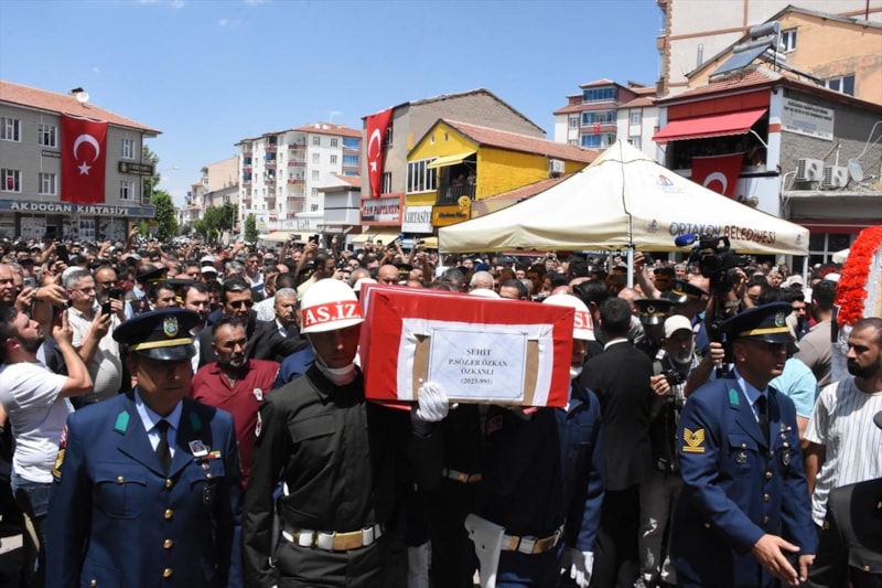 Şehit Piyade Sözleşmeli Er Özkan Özkanlı, memleketi Aksaray'ın Ortaköy ilçesinde düzenlenen tören ile son yolculuğuna uğurlandı. Silah arkadaşı, şehidin Türk bayrağına sarılı naaşına sarılarak gözyaşı döktü.