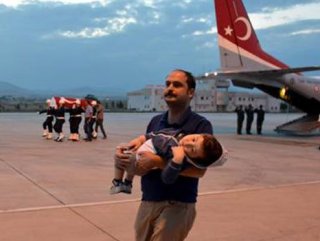 Şehit Çeken’in oğlu 3 yaşındaki Cevdet ise hiçbir şeyden habersiz bir yakınının kucağında etrafı izledi.