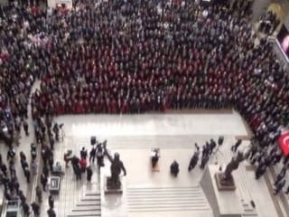 İstanbul Adalet Sarayı'ndaki makam odasında geçen yıl bugün terör örgütü DHKP-C üyeleri tarafından rehin alındıktan sonra şehit edilen Cumhuriyet Savcısı Mehmet Selim Kiraz için anma töreni düzenlendi.