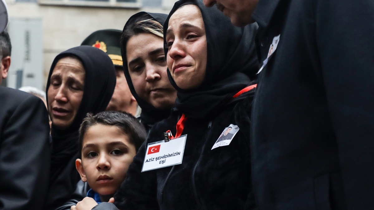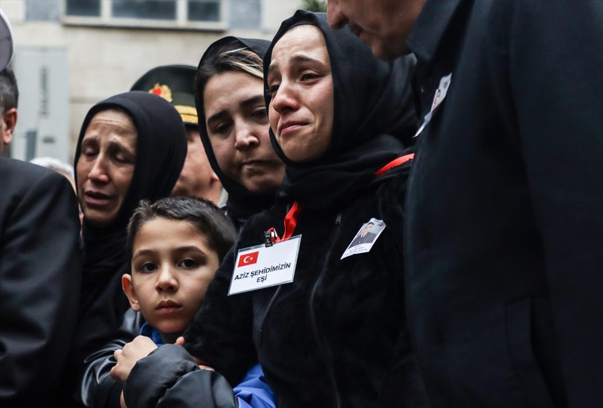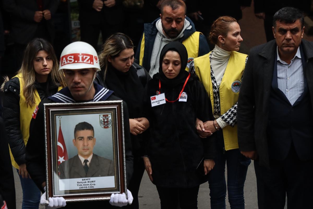 Şehidin annesi, eşi ve bazı yakınları tören sırasında Kurt'un Türk bayrağına sarılı tabutu başında gözyaşı döktü.