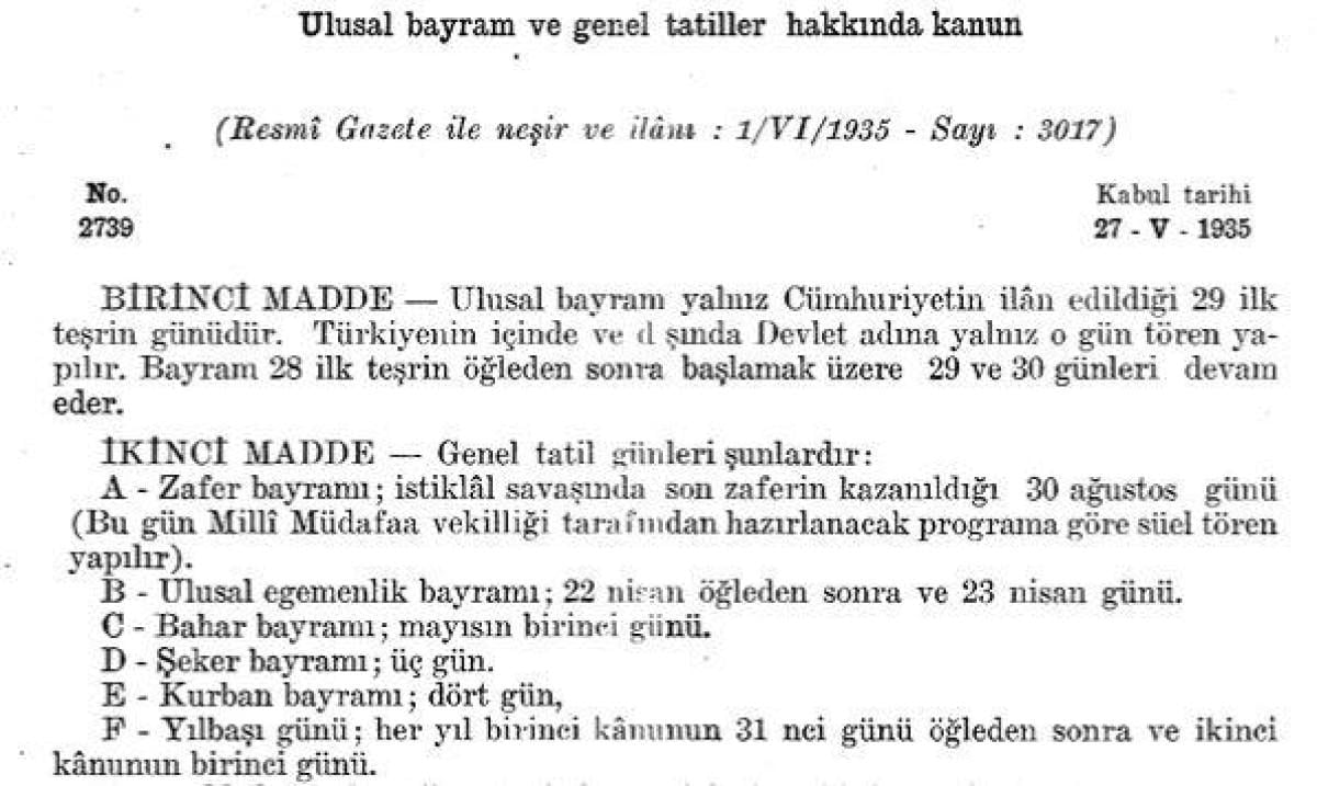 Cumhuriyet yönetimine geçilmesinin ardından yapılan kanuni düzenlemeler ise sık sık toplumdaki kimi “dini izler”in silinmesi çabalarına sahne olmuştu. CHP tek parti iktidarı tarafından Meclis’e getirilen 2739 Sayılı Ulusal Bayram ve Genel Tatiller Hakkında Kanun’da da tatiller düzenlenirken, “dini çağrışımlar” silikleştirilmeye çalışılmıştı. Söz konusu kanunda, Ramazan Bayramı “Şeker Bayramı” haline getirilmişti. Dini terimlerin yerine seküler ifadelerin kullanılması yönündeki eğilim sonucu, tasarı bu şekilde kanunlaşmıştı.