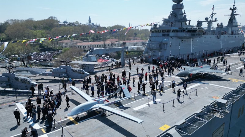 Dünyanın ilk silahlı insansız hava aracı (SİHA) gemisi TCG Anadolu, önceki gün İstanbul Sarayburnu Limanı'nda halk ziyaretine açıldı.