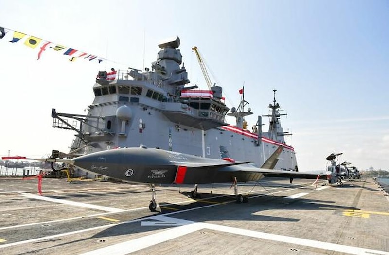 Dünyanın ilk silahlı insansız hava aracı (SİHA) gemisi TCG Anadolu, Türkiye’nin en büyük askeri gemisi unvanını taşıyor.