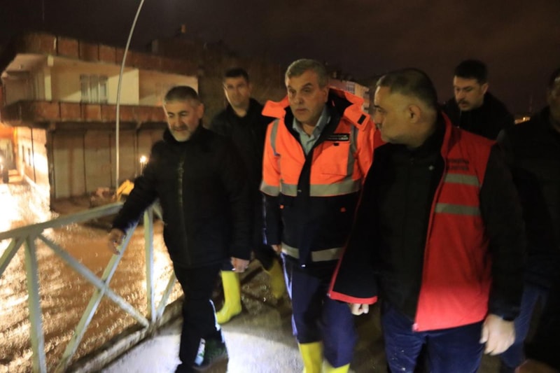İtfaiye ekipleri, ŞUSKİ, Fen İşleri ve Kırsal Hizmetler Daire Başkanlığı ekiplerinin yürüttüğü Şanlıurfa Büyükşehir Belediye Başkanı Zeynel Abidin Beyazgül’ün de eşlik ettiği çalışmaları yerinde incelemek üzere bölgeye gelen Hazine ve Maliye Bakanı Nureddin Nebati, son durum hakkında bilgi aldı.