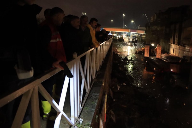 Abide Kavşağı Alt geçidi ve Karakoyun Deresi bölgesinde çalışmalarını sürdüren ekipler, cadde ve sokakları balçıktan arındırıyor.