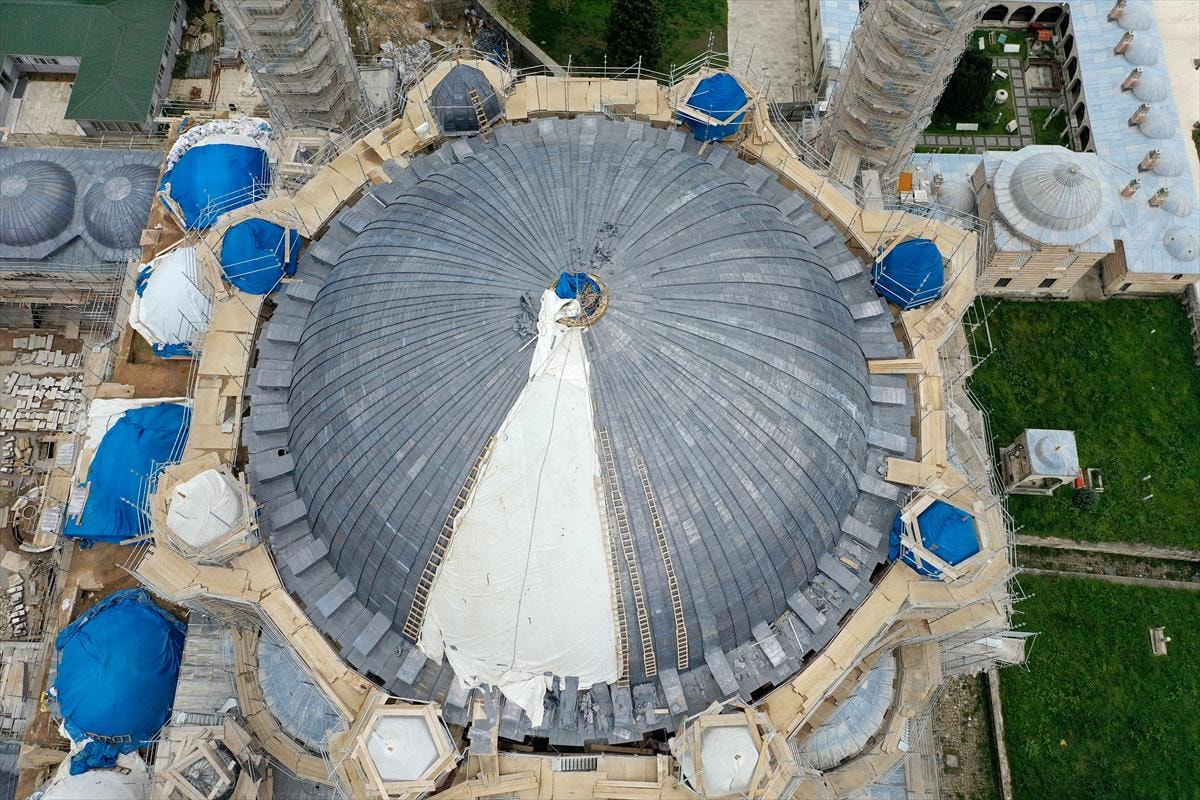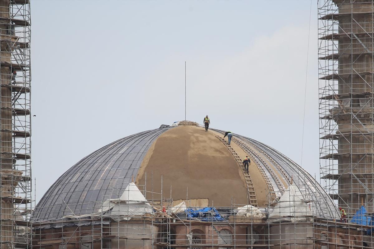 Yüzde 90'ı tamamlanan ana kubbe kurşun kaplama işinin gelecek hafta tamamlanması öngörülüyor.