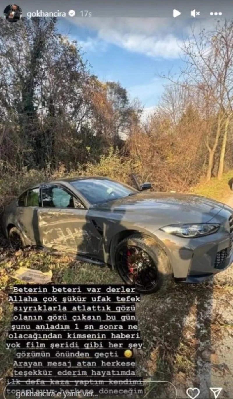 Gökhan Çıra, geçirdiği kaza sonrasında yaptığı paylaşımda ufak tefek sıyrıklarla kurtulduğunu söyleyerek, "Gözü olanın gözü çıksın" dedi.