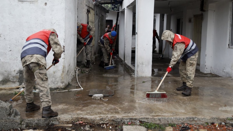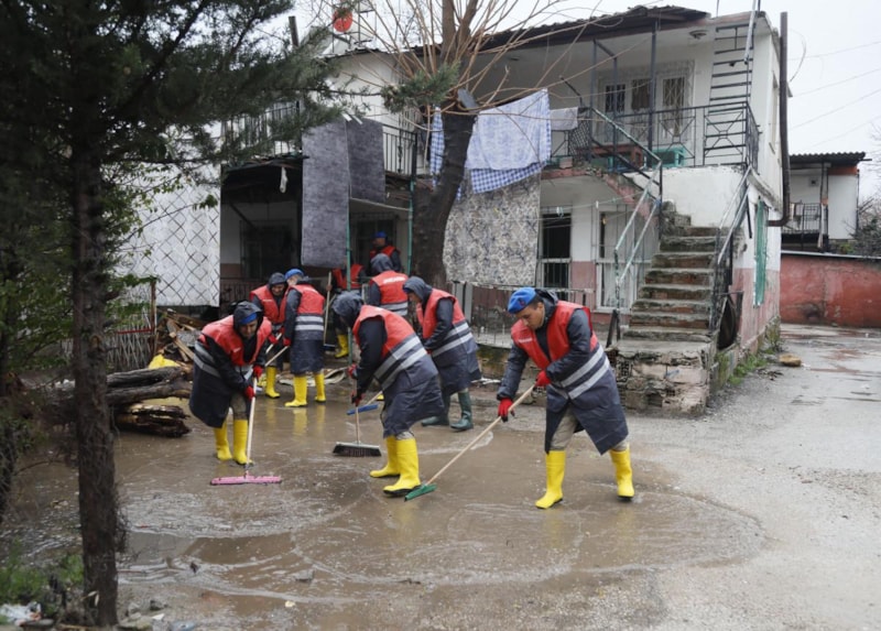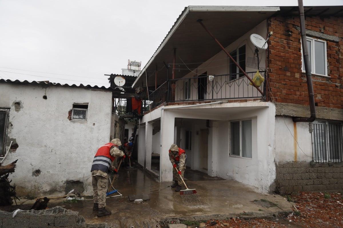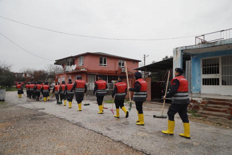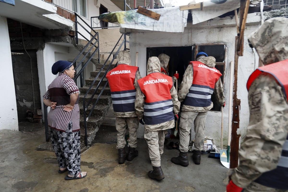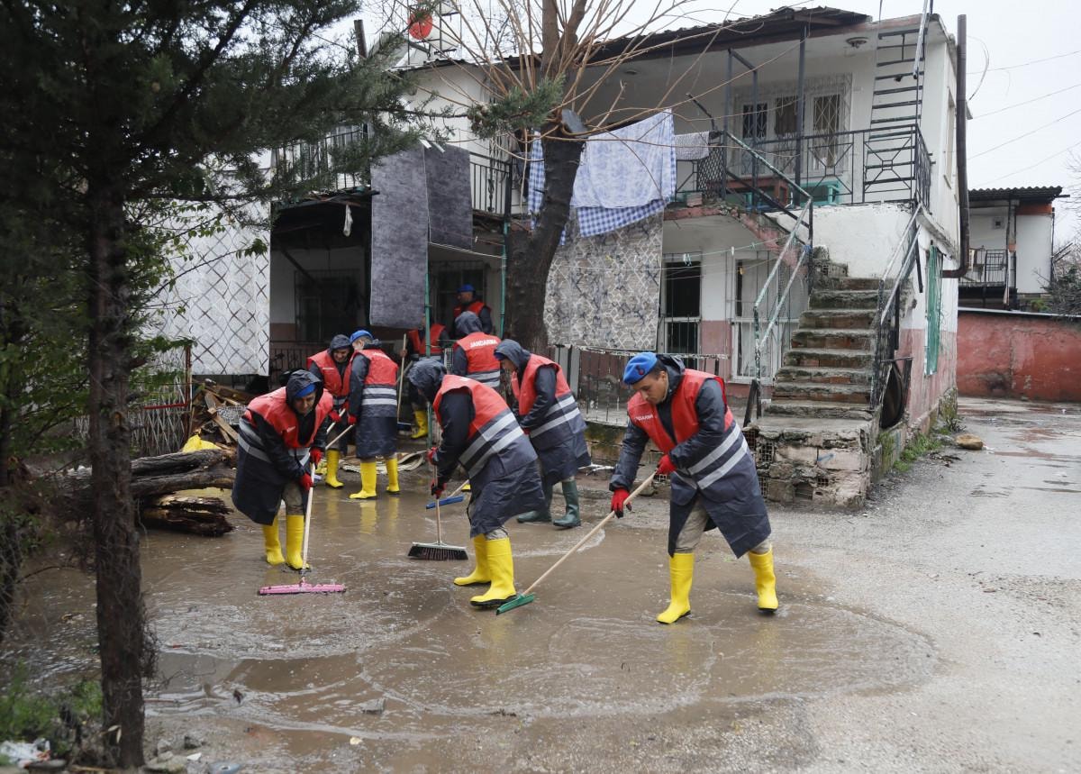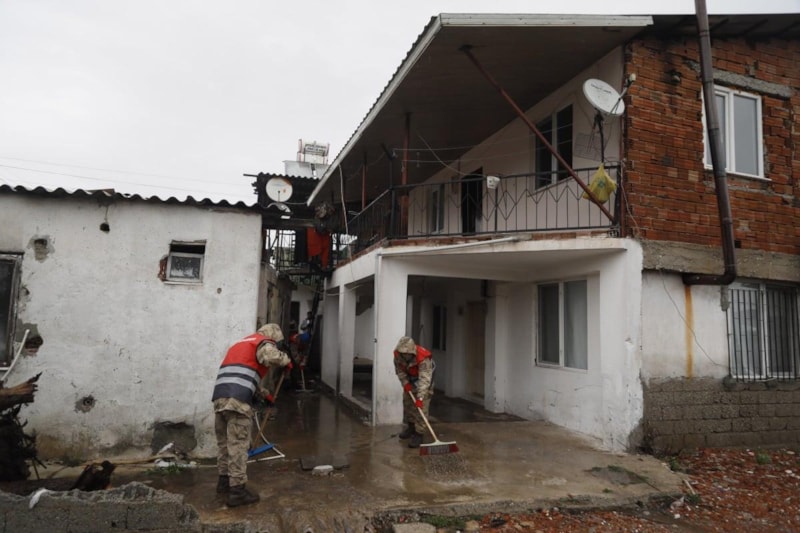 Jandarma komando ekipleri de mahalleye gelerek destek verdi. 300 komando, ellerinde süpürge ve küreklerle evlerin içinde ve bahçelerde biriken suyu tahliye etti.