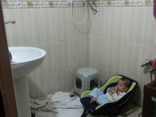Evde oluşan hasarın boyutu ve çatışmalar sırasında banyoya saklanan bebeğin çekilen fotoğrafları, sosyal medyada paylaşıldı.