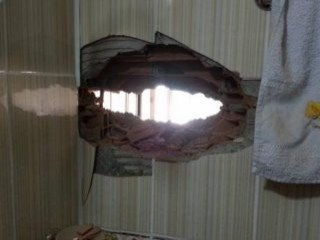 Bebeğin alınmasından 10 dakika kadar sonra banyoya da mermiler isabet etti. Çift, olaydan sonra bebeklerini banyoda saklarken çektikleri ve evin harap haldeki fotoğrafları, sosyal medyadan paylaştı.