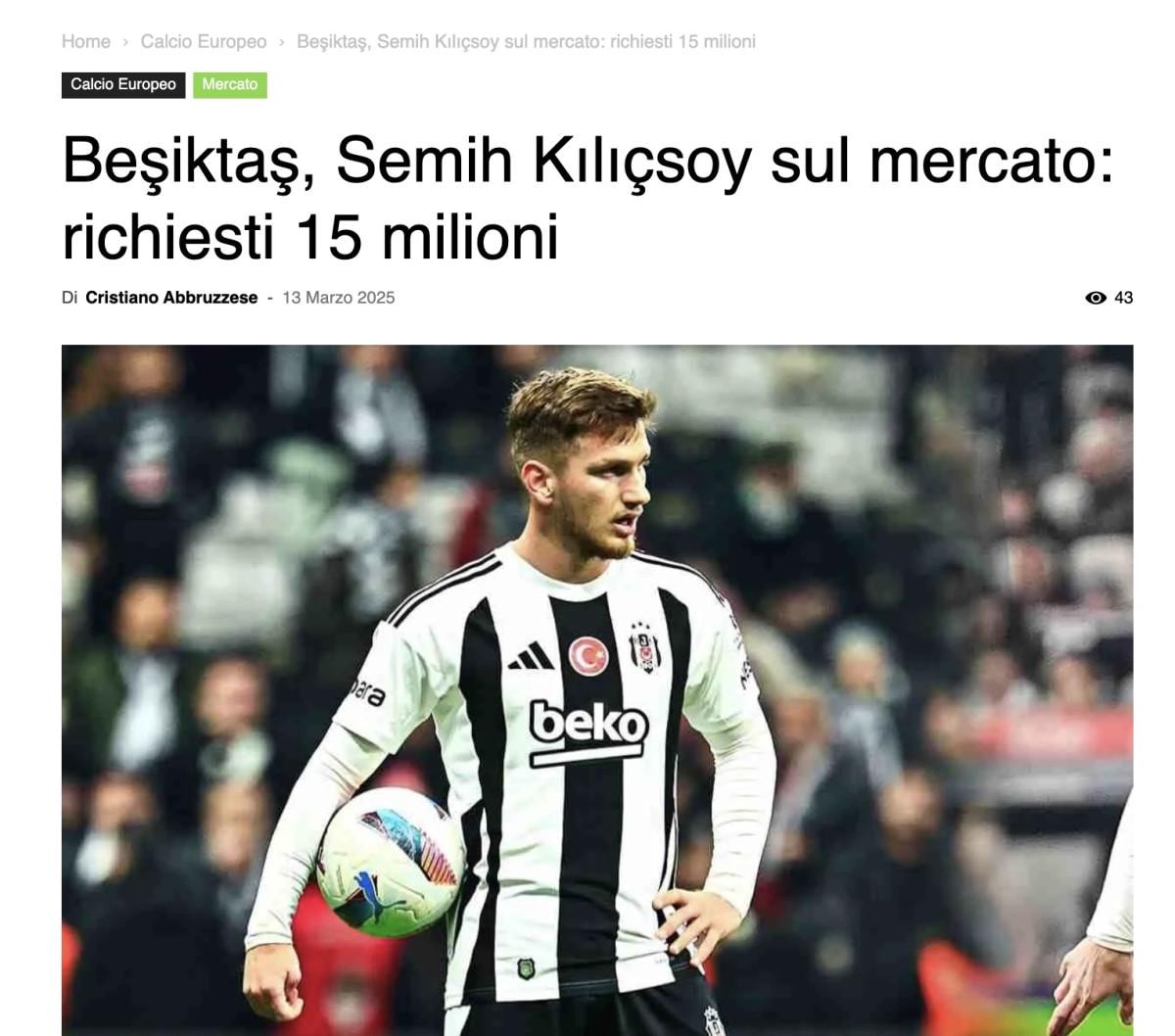Beşiktaş'ın genç yeteneği Semih Kılıçsoy'a İngiltere Premier Lig takımlarının ilgisi sürüyor.