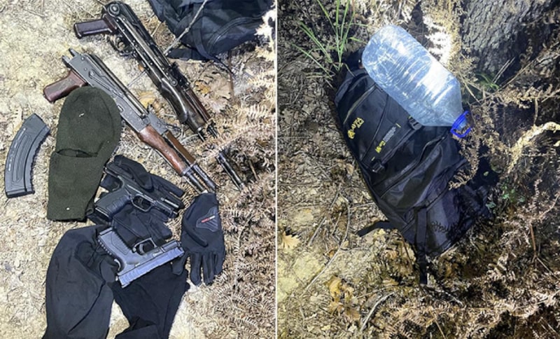 Şüphelilerin sorgusunda silahların yerini öğrenen ekipler, bölgede yaptıkları aramada 2 kalaşnikof tüfek, 2 tabanca ve kar maskesi, eldiven gibi ekipmanları ele geçirdi.