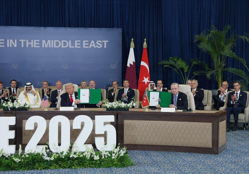 Şimdi bu yani herhalde Orta Doğu'daki bütün barışı ve huzuru getirecek bir belge. Ben bu fotoğrafın tamamı içinde konuşulması gerektiğini düşünüyorum. Ben sizinle şu konuda aynı fikirdeyim. Ben de bu fotoğrafın, bu barış mesajının samimi olmadığını düşünüyorum. Yani bu şekilde yapılan bir şey bir barışı getirmeyecek. Çünkü barış adil ve kalıcı bir şekilde olur. Bu şekilde bir barış olmaz. O fotoğrafa bir kez daha şöyle bakıyorum. Ben o fotoğrafın bütün liderler açısından da Gazze için bir önemi olmadığını düşünüyorum. Yani sadece bu masada oturan insanların fotoğraf verdiğini görüyoruz. Çünkü bu barış mesajı, bu barışın gelebilmesi için özellikle Gazze'ye yönelik bir irade ortaya koymaz. Yani bu kadar büyük bir toplantı olduğu bir yerde Gazze'ye yönelik hiçbir şeyin olmadığını görüyoruz.
