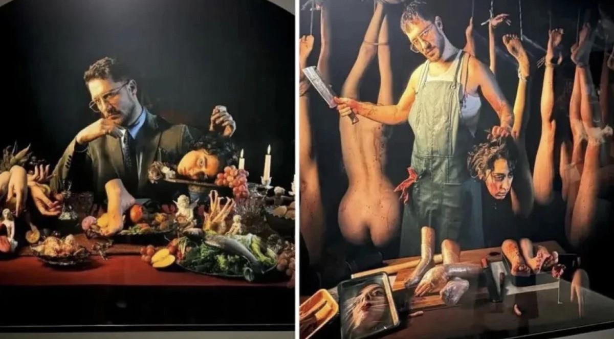 Elinde kasap bıçağı, kadın kafası ve kanlar içerisinde pozlar veren Kaygılaroğlu’na, “Kadın kasabı ‘sanatın’ İstanbul surlarında hayat buldu.” yorumları yapıldı.