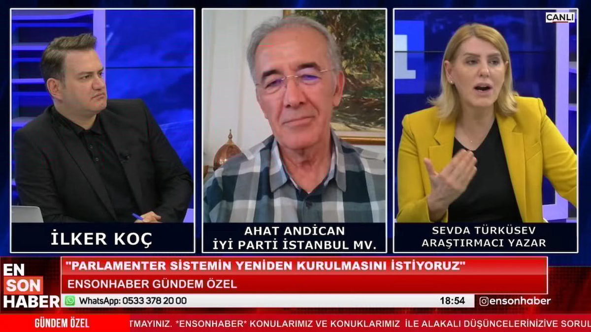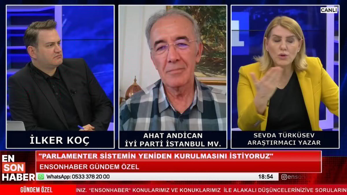 Gündeme özel değerlendirmelerde bulunan Türküsev, yayına canlı bağlantı ile katılan İyi Parti İstanbul Milletvekili Ahat Andican'a soru yöneltti.
